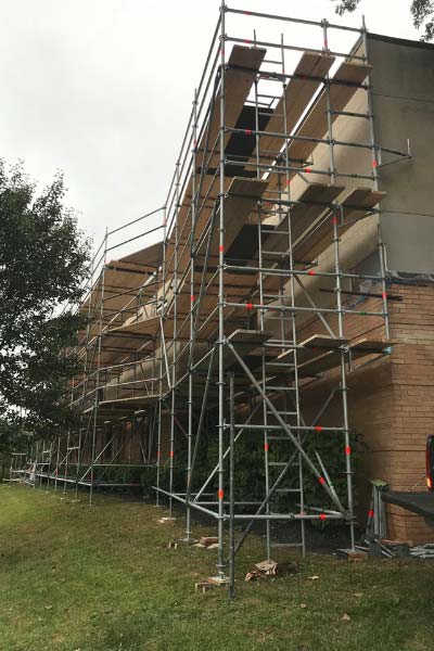 We also install system scaffolding for more complex jobs which require access to intricate areas such as boiler rooms or the interior/exterior of churches, etc. The flexibility of system scaffold allows us to create a custom footprint to access any area. We generally only install this type of scaffold, however, if you have an exact piece count, we will sell you the equipment and your team can install it.